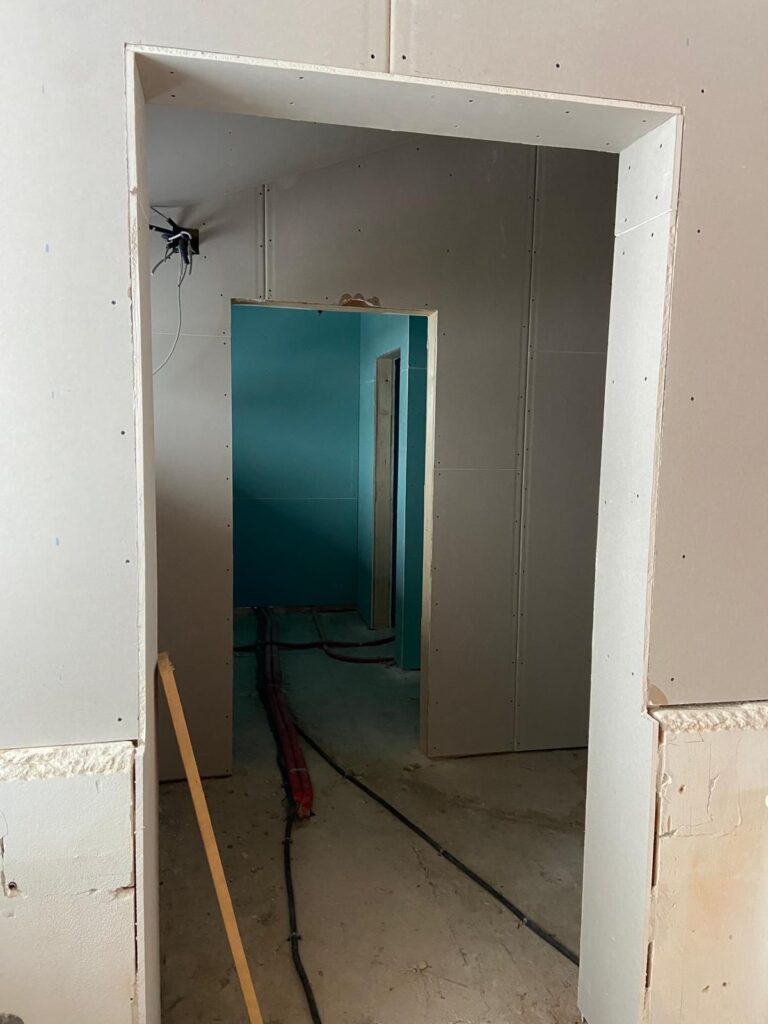 Die Maler der Firma Plursch haben mit ihren Arbeiten begonnen und sorgen Schritt für Schritt für ein neues Erscheinungsbild. Außerdem wurde das 5. Sektionaltor erfolgreich fertig eingebaut. Der Installateur arbeitet weiterhin fleißig an den Luft- und Wasserleitungen. Parallel dazu wird bereits ein neues Heizungskonzept umgesetzt – wir investieren hier nachhaltig in die Zukunft. Der Spindraum ist baulich soweit fertig und wartet nun auf den Fliesenleger. Bald können wir unsere Einsatzbekleidung nach langer Zeit wieder in einer sauberen und modernen Umgebung unterbringen.
