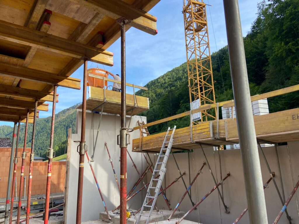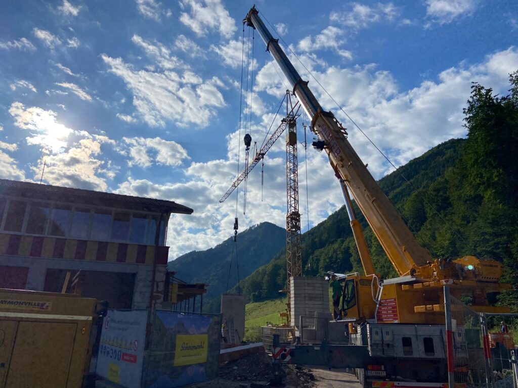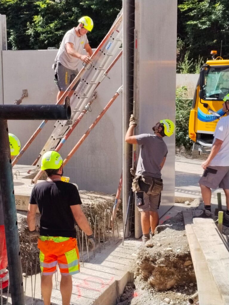 Diese wurde mit Hilfe eines 120t Kranes aufgestellt und am Abend noch betoniert.